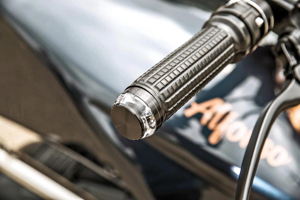 En cuanto al motor, como ya hemos explicado, fue necesario restaurarlo por completo y, dado que se mantenía la arquitectura y cilindrada original, se aprovechó para introducir algunas mejoras como la incorporación de dos líneas de escape completas realizadas artesanalmente con ambos silenciadores sobreelevados, colocados bajo el asiento, para rematar una zaga que no cuenta con guardabarros, sino con un soporte para matrícula colocado sobre el volante. En definitiva, una pieza de artesanía del más alto nivel, cuyo resultado final llenará de orgullo al hombre del que heredó su nombre.