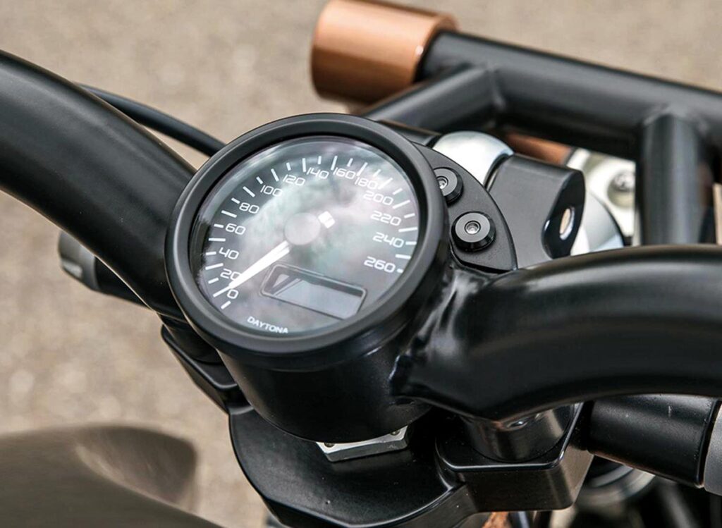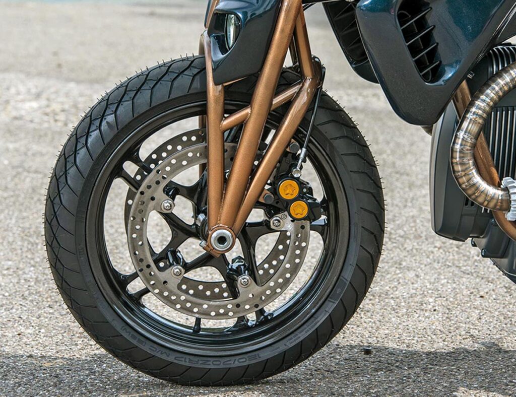 Sin embargo, el diseño exótico de la horquilla delantera creaba un nuevo problema, como era cómo integrar las ópticas y la solución encontrada se inspiró en las de la s1000RR, a través de las protecciones estilo “Angel Eye”, cuyo resultado no pudo ser mejor. La superbike alemana no fue la única fuente de «inspiración» para este proyecto, ya que tanto los frenos como las ruedas provienen de una BMW R 1150 RT.