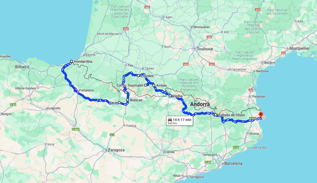 Para este post hemos escogido una ruta transpirenaica en moto que supone recorrer unos 930 km, desde Hondarribia —en Guipúzcoa—, hasta culminar en la localidad de Roses, en el Alt Empordà de Girona. Además, frente a lo que hacen otros moteros, en nuestro caso hemos decidido limitar la ruta transpirenaica a recorridos sobre asfalto. De esta manera, será más asequible y sencilla de completar para la mayoría. Más que nada porque no habrá limitaciones en función del tipo de moto que tengas.