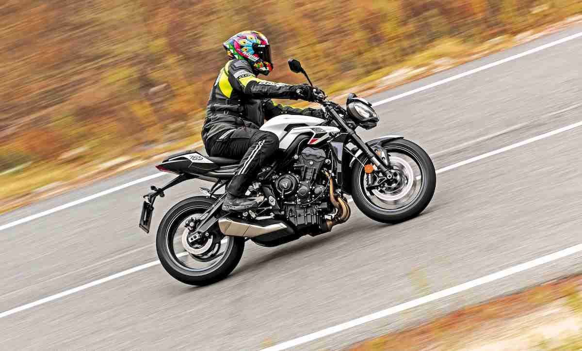 A principios de los ‘90, cuando el propietario de una deportiva tenía un percance, era habitual que se esmerase para devolver a la vida a su maltrecha amiga, desprovista ya de carenados. Así nacía la tendencia streetfighter, deportivas puras desnudas y con todas sus intimidades al aire. Desde mediados de esa década y sin perder su seña de identidad hace más de veinte años, las nuevas Street Triple aún marcan tendencia con una estética agresiva, que no deja indiferente. Esta Street Triple comparte el propulsor tricilíndrico de 765 cc con sus hermanas mayores, de mayor potencia eso sí, pero teniendo la misma relación directa con los utilizados en el mundial de Moto2.