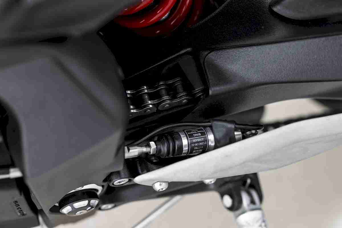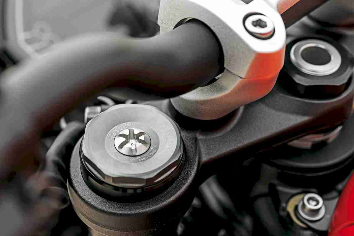 Suspensión trasera Monoamortiguador Showa depósito independiente, ajustable en precarga, compresión y extensión, rec. 133,5 mm