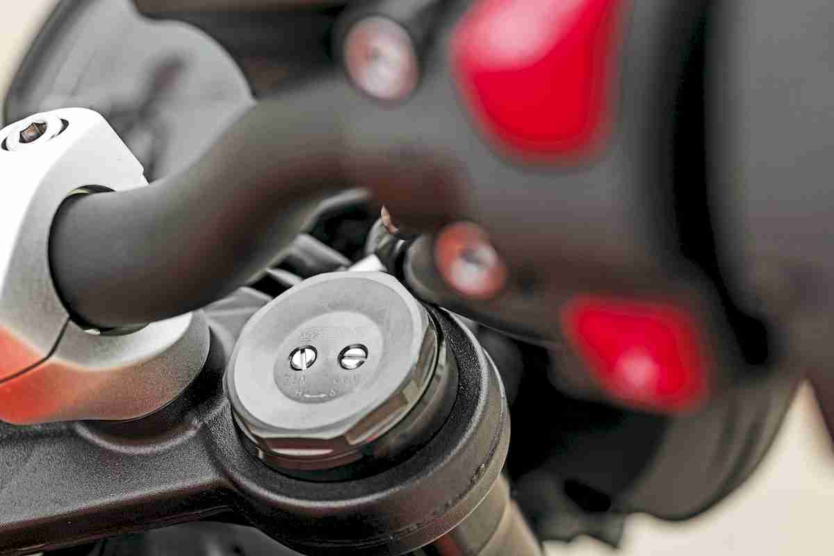 Suspensión delantera Horquilla invertida Showa (SFF-BP) de 41 mm de diámetro, rec. 115 mm, función hidráhulica separada, ajuste de precarga, compresión y extensión
