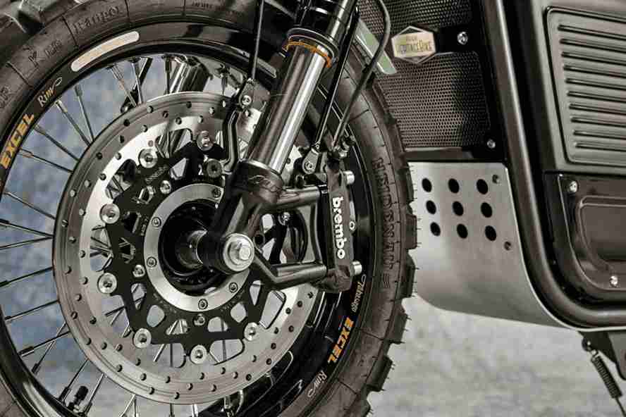 En apenas cuatro años, Xavier Wargnier y Guillaume Monsigny (junto a otros 15 inversores) han conseguido que Ateliers Heritage Bike, com sede en Annecy (un auténtico pueblo de cuento cerca de Suiza), se haya convertido en una de las marcas de motos y bicis eléctricas con más prestigio del país galo. La receta de su éxito está en combinar líneas clásicas y llenas de músculo con buenos componentes y tecnología de vanguardia. El resultado son motos como esta llamativa Heritage Spirit Scrambler X R4. Dado que el propio R4 llega para posicionarse como un coche con un marcado espíritu de libertad (como lo fue en su momento el original, muy popular en entornos rurales), el enfoque de esta moto ha ido claramente en la misma línea. Se trata de una scrambler com un único faro LED (inspirado en el coche), chasis de tubo de acero y un cuerpo marcado en dos volúmenes en el que no se echa en falta la forma del depósito ovalado (aunque no se necesite) com la batería y otros componentes electrónicos completamente carenados bajo éste. Un largo asiento plano fabricado en materiales sostenibles va hasta una trasera ocupada en exclusiva por un corto guardabarros, sobre una rueda de tacos de Heidenau, igual que la delantera. El equipo de suspensiones lo firma WP con una horquilla invertida, y EMC para el amortiguador trasero, com discos de freno Brembo en ambos ejes.