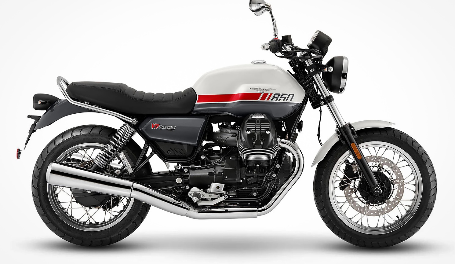 El V7 está disponible en cuatro configuraciones diferentes, siendo nuestra elección el V7 Special, con sus tubos cromados, barra de agarre para el pasajero y gráficos retro. Si bien ninguno de los V7 se comercializa explícitamente como un scrambler, cambiar los neumáticos de carretera Dunlop Arrowmax por neumáticos Pirelli Scorpion pondría al V7 a la par de varios otros competidores en este segmento.