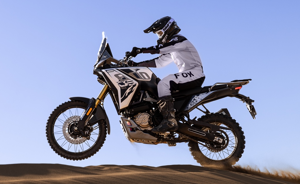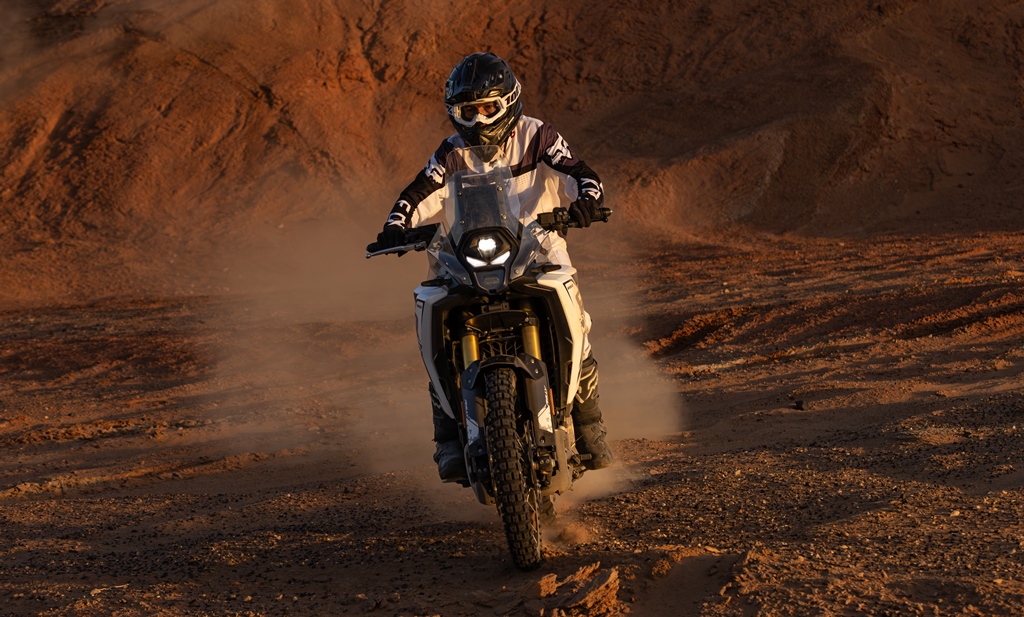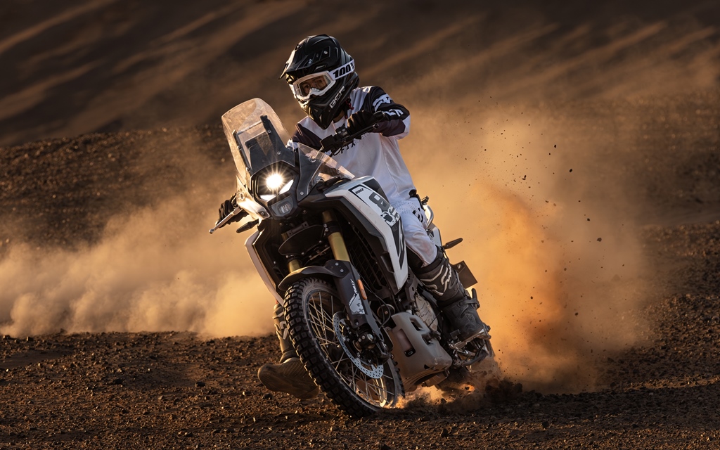 En el corazón de la DS800 Rally se encuentra un nuevo motor bicilíndrico en paralelo de 798 cc. Este propulsor de última generación desarrolla una potencia máxima de 94 CV a 9.000 rpm y un par máximo de 81 Nm a 6.500 rpm. La moto incorpora una transmisión de seis velocidades con embrague hidráulico anti-rebote, para ofrecer el mejor rendimiento incluso en condiciones exigentes, tanto en carretera como fuera de ella. La entrega de potencia ha sido optimizada para asegurar una respuesta inmediata y lineal en todo el rango de uso, proporcionando una aceleración contundente y una gran elasticidad de marcha. Gracias a estas características, la DS800 Rally se muestra igualmente eficaz en viajes por autopista como en los desafíos del off-road más exigente. Además, cuenta con dos modos de conducción, lo que permite personalizar la entrega de potencia según las preferencias del conductor y las condiciones del terreno.